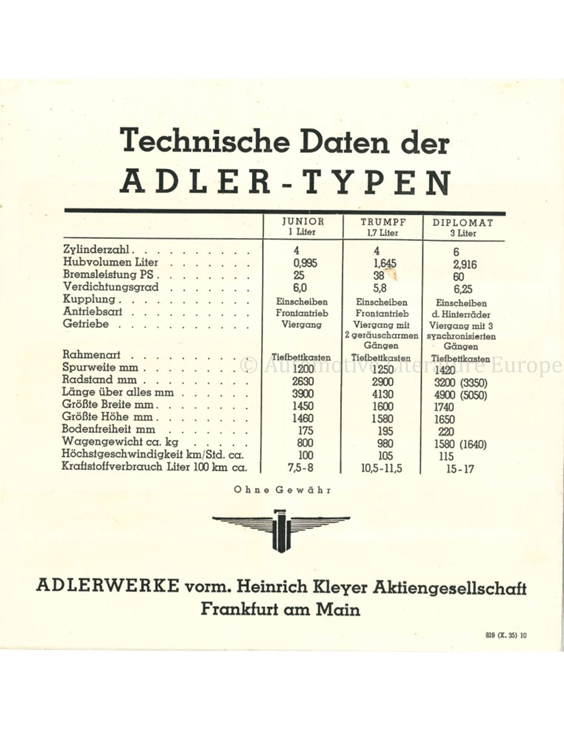 1936 ADLER PROGRAMM PROSPEKT DEUTSCH