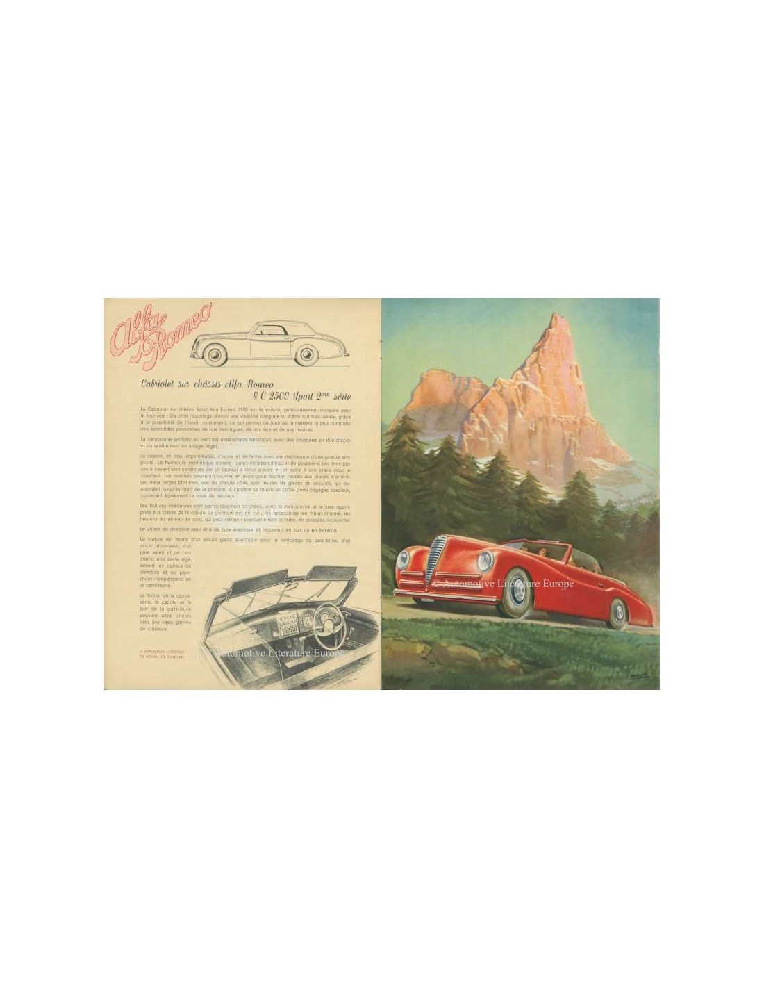 1947 ALFA ROMEO 2500 SPORT & SUPER SPORT PROSPEKT FRANZÖSISCH