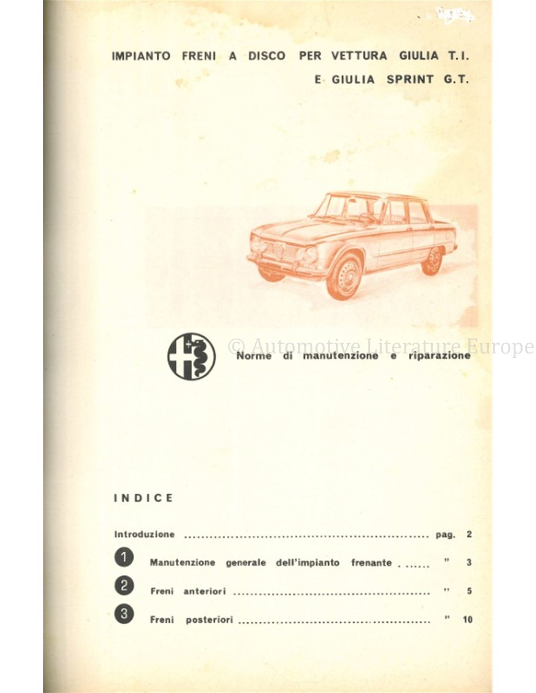 1963 ALFA ROMEO GIULIA TI | SPRINT G.T. WARTUNGS- UND REPARATURVORSCHRIFTEN SCHEIBENBREMSSYTEM ITALIËNISCH