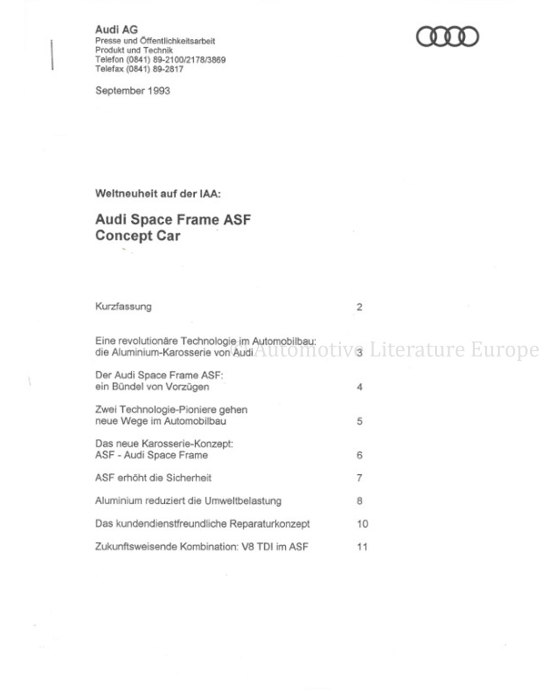 1993 AUDI ASF PRESSEMAPPE DEUTSCH