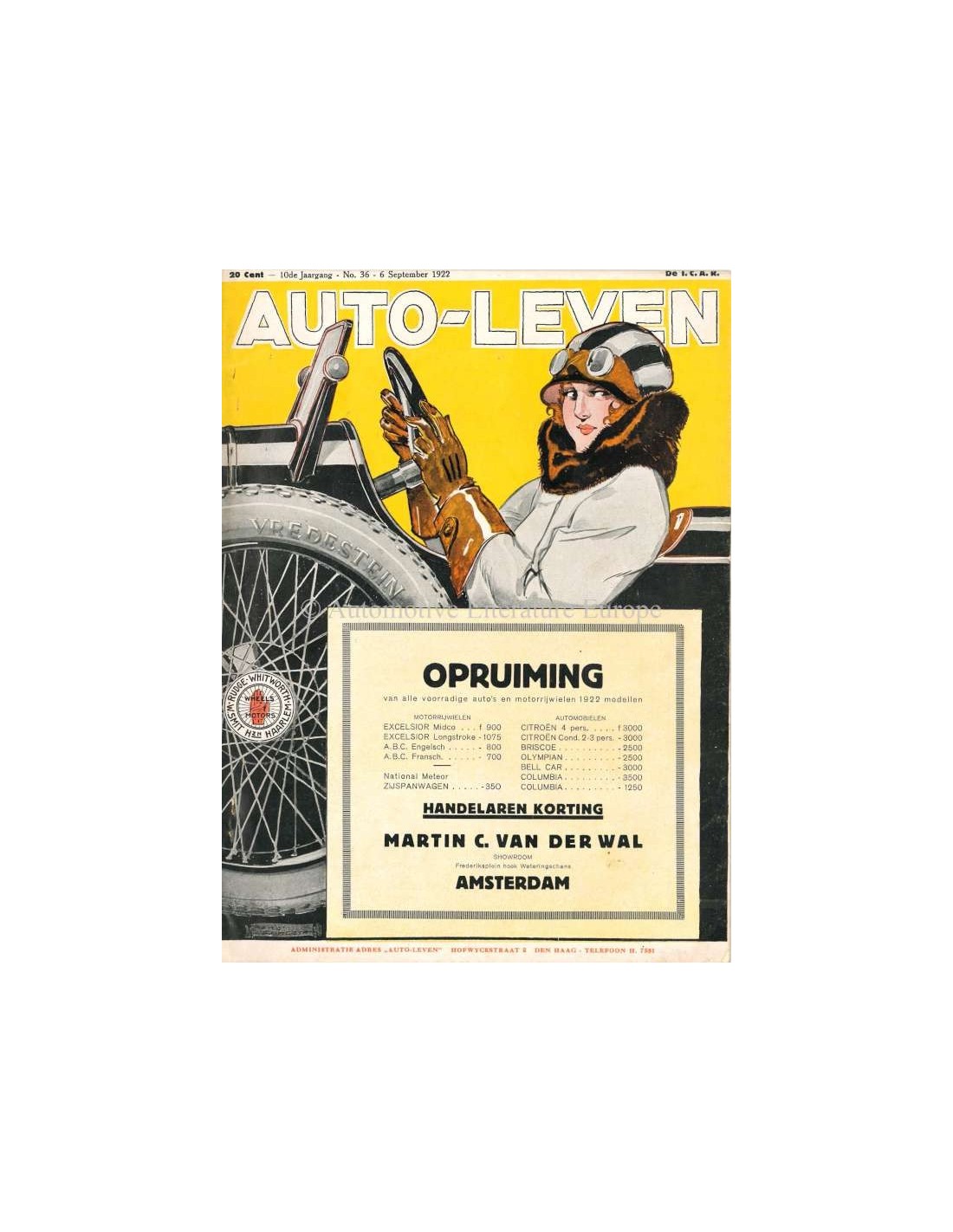 1922 AUTO-LEVEN MAGAZIN 36 NIEDERLÄNDISCH