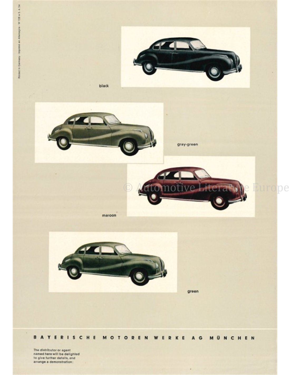 1954 BMW 501 PROSPEKT ENGLISCH (VS)