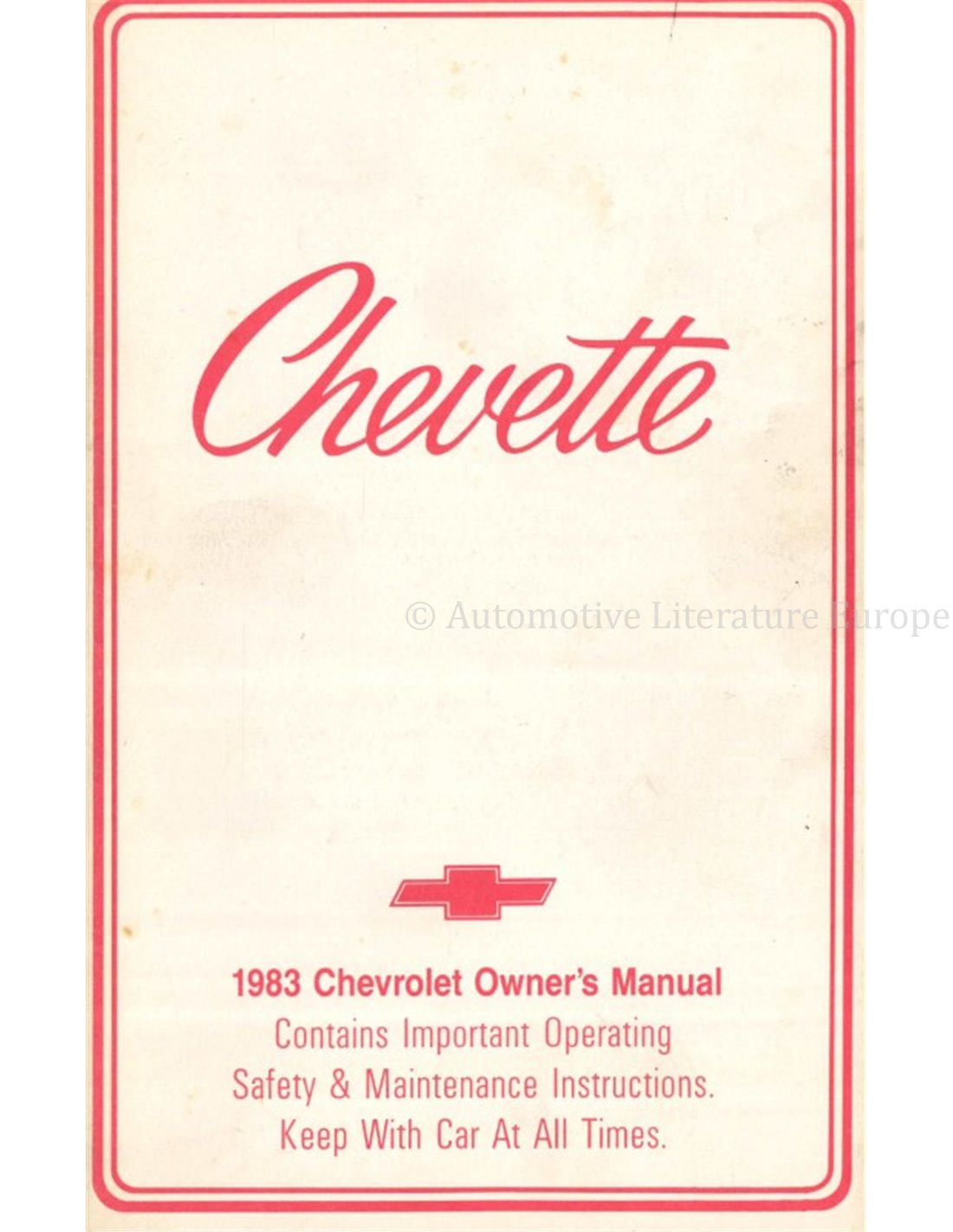 1983 CHEVROLET CHEVETTE BETRIEBSANLEITUNG ENGLISCH