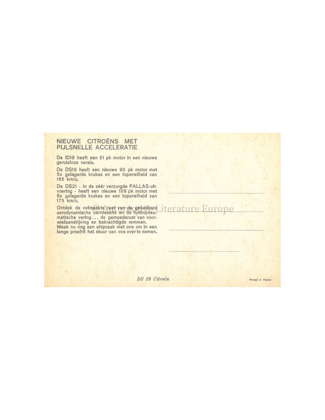 CITROËN DS 19 POSTKARTE NIEDERLÄNDISCH