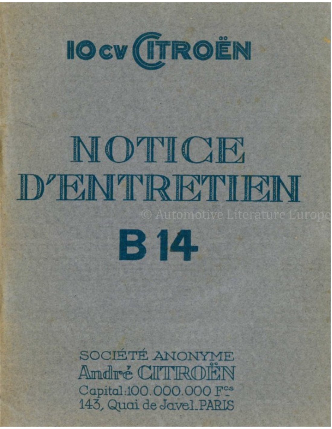 1927 CITROËN B14 BETRIEBSANLEITUNG FRANZÖSISCH