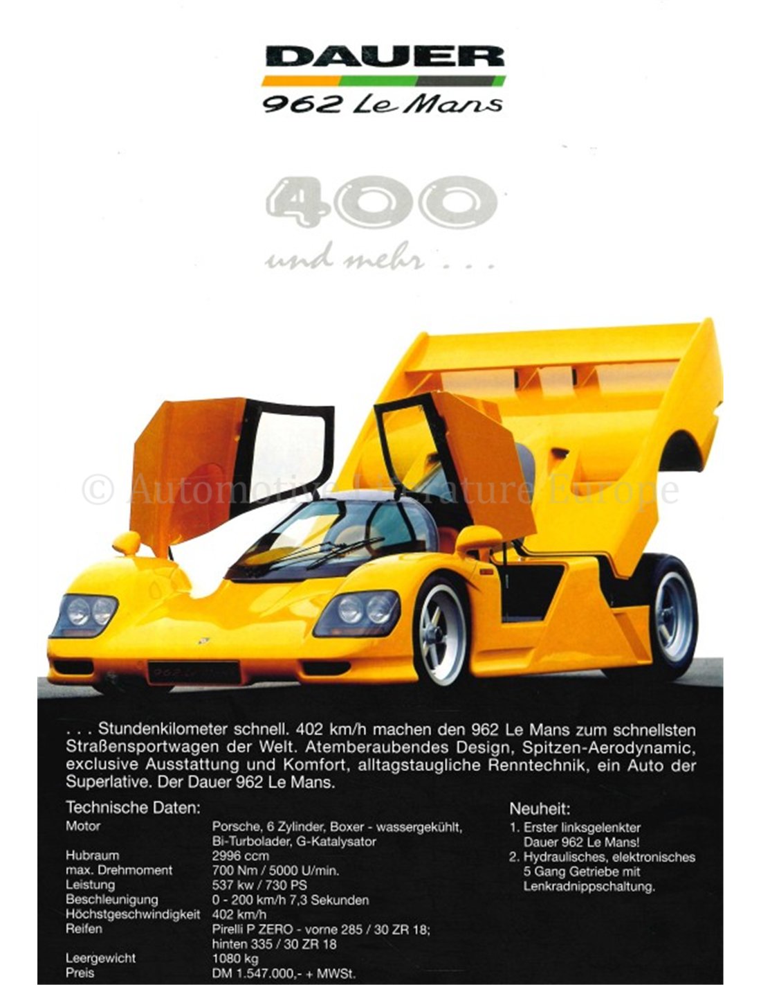 1993 DAUER 962 LEMANS PROSPEKT DEUTSCH