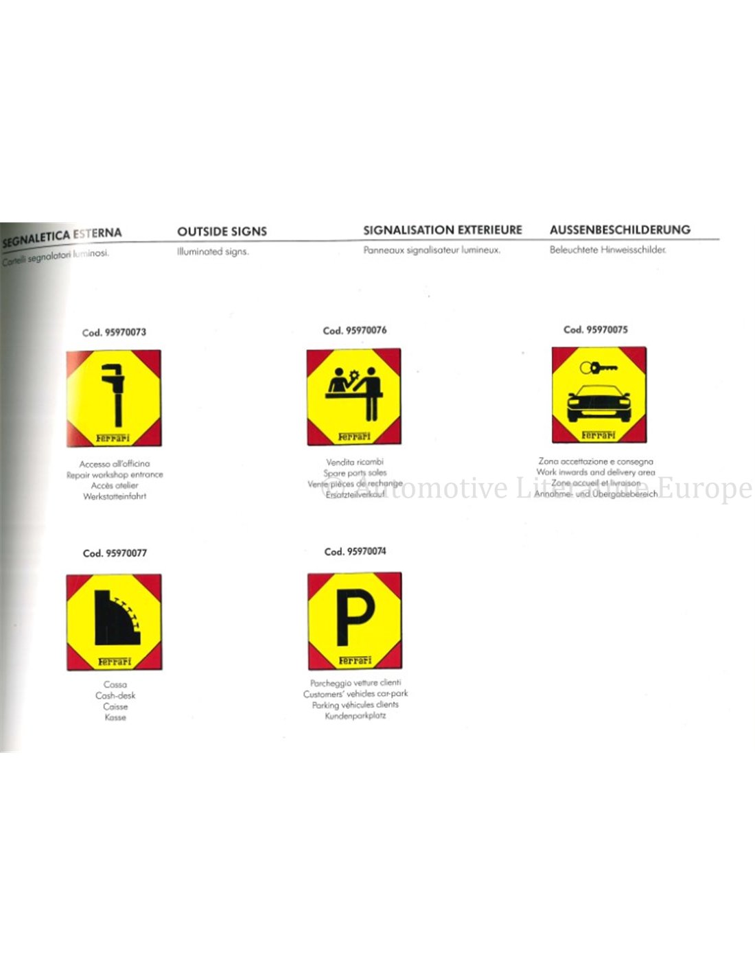 1989 FERRARI IDENTIFIZIERUNG DER WERKSTÄTTEN HARDCOVER PROSPEKT MULTI
