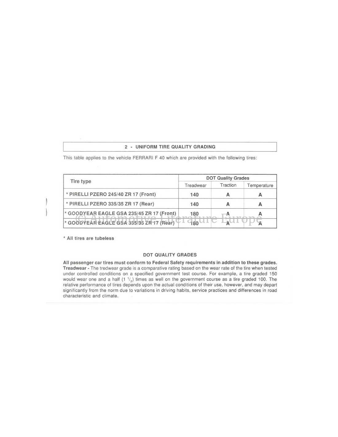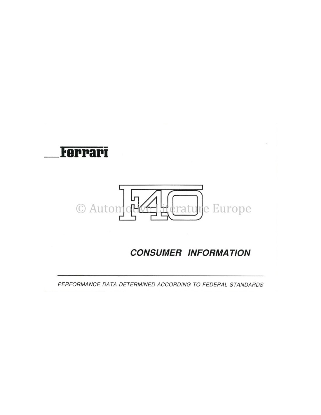 1990 FERRARI F40 VERBRAUCHERINFORMATION BETRIEBSANLEITUNG 594/90