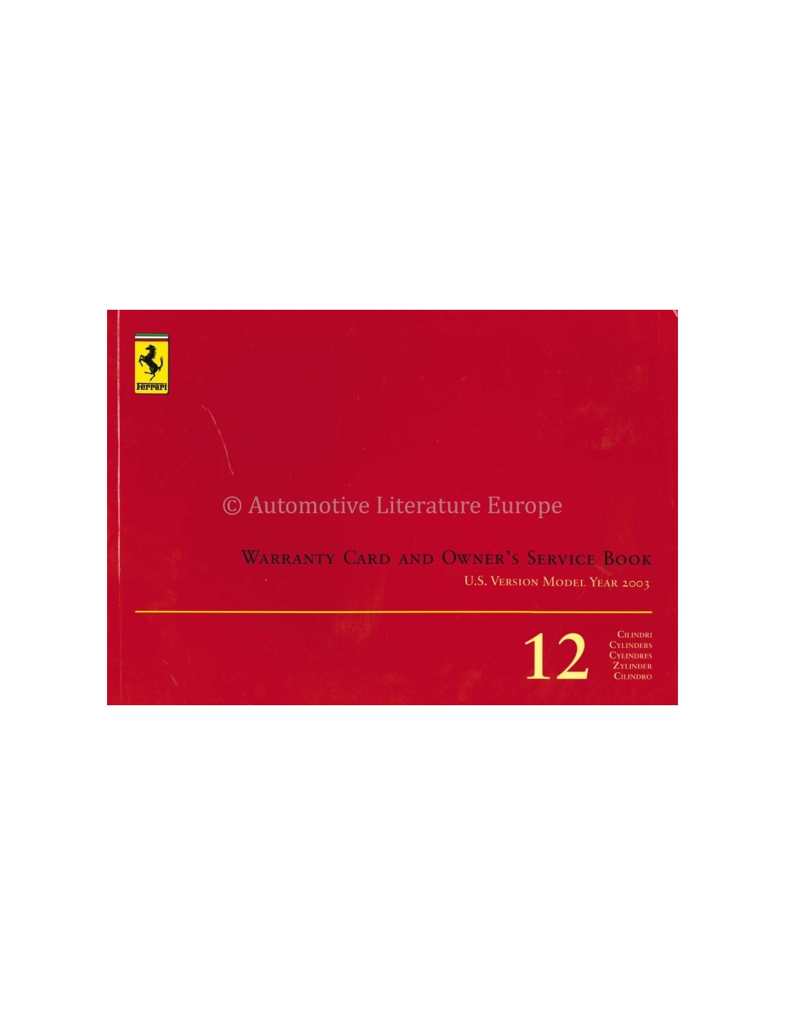 2003 FERRARI 12 ZYLINDER GARANTIEKARTE & WARTUNGSPLAN (USA AUSGABE)