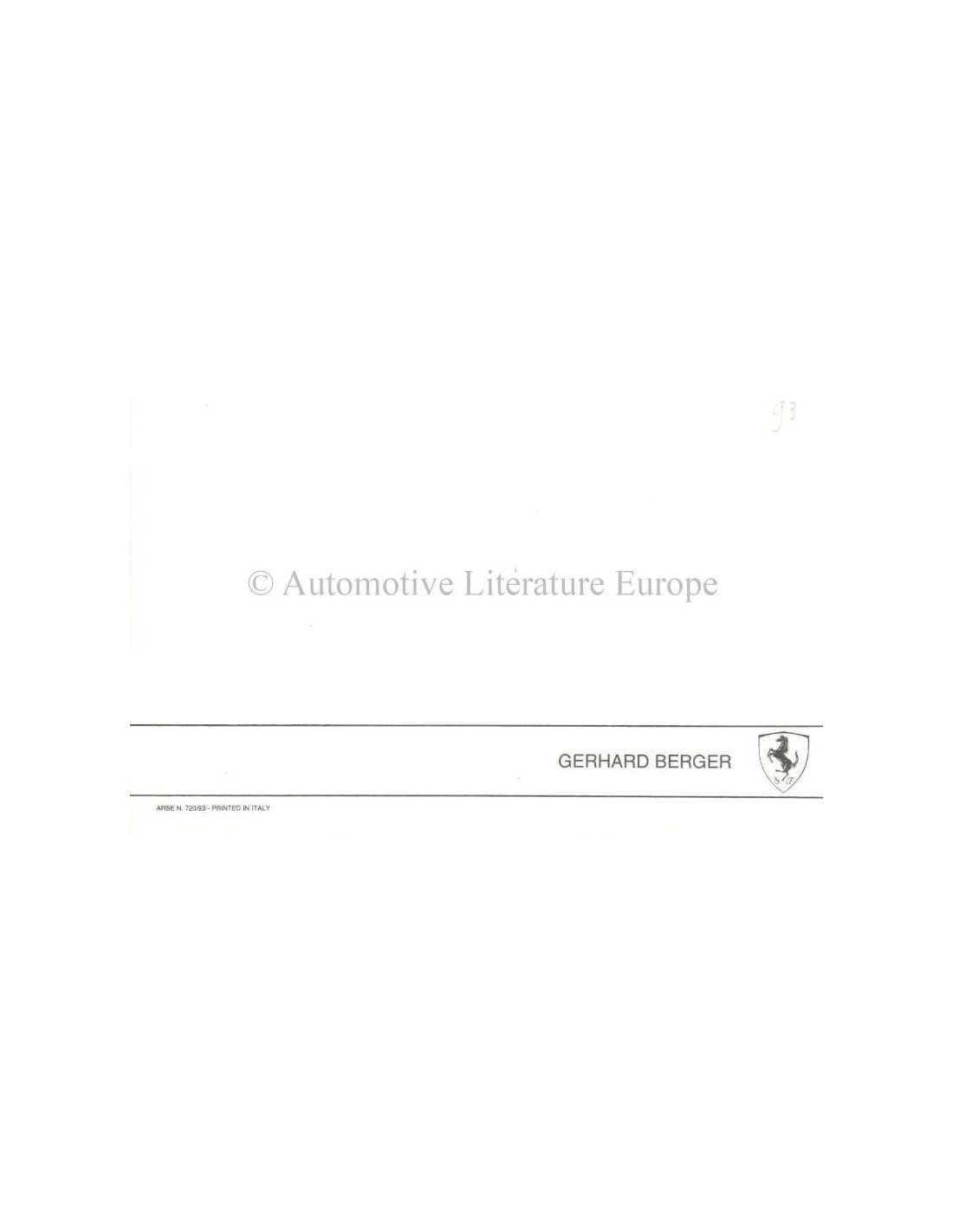 1993 FERRARI GERHARD BERGER POSTKARTE