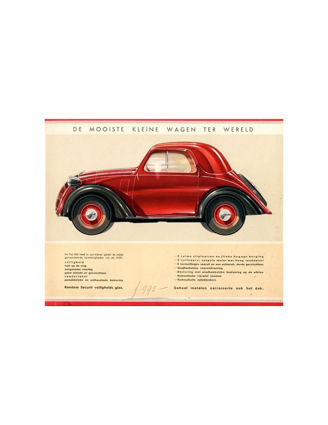 1936 FIAT TOPOLINO BROCHURE NEDERLANDS