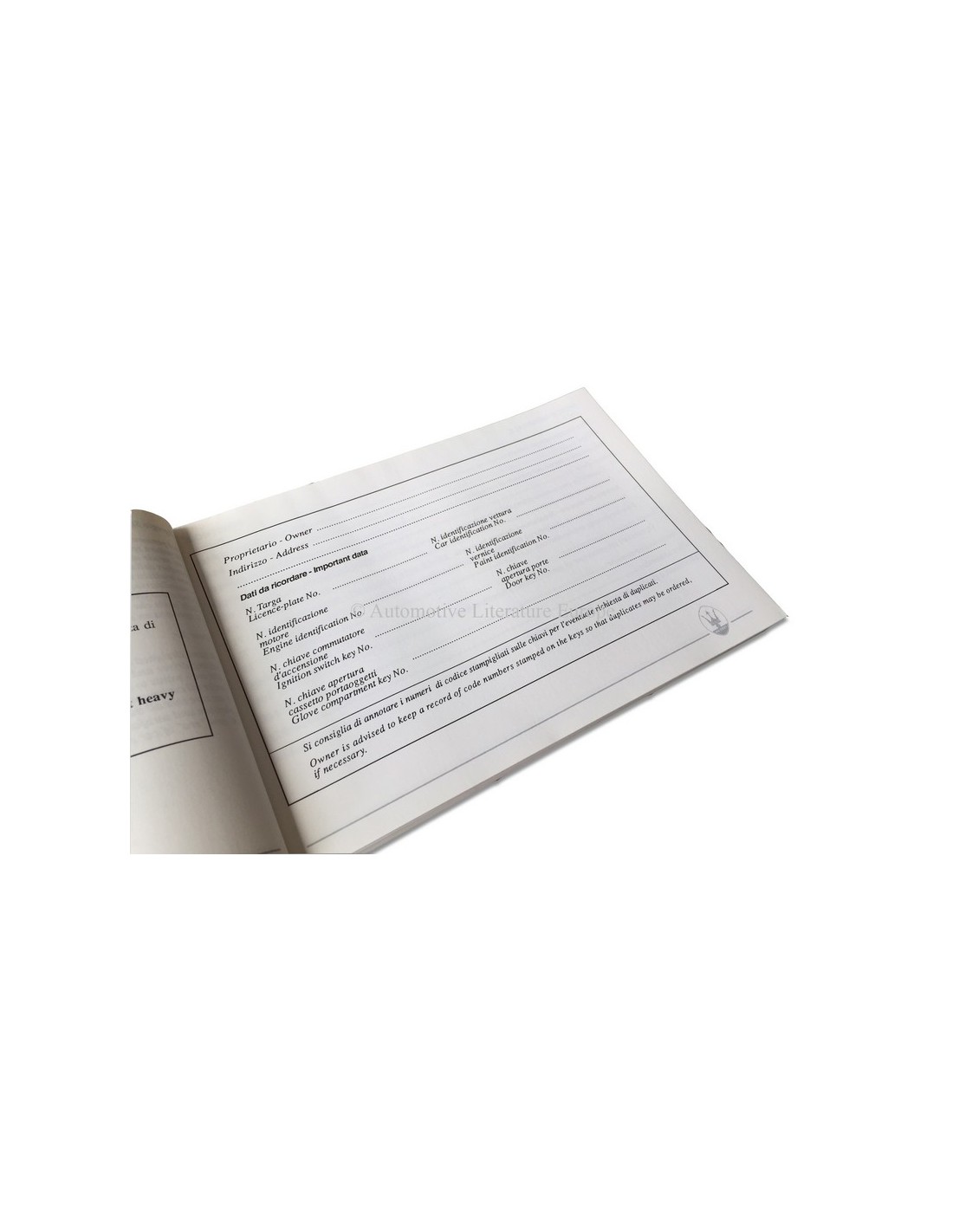1989 MASERATI 222 SPYDER E BETRIEBSANLEITUNG ITALIENISCH ENGLISCH