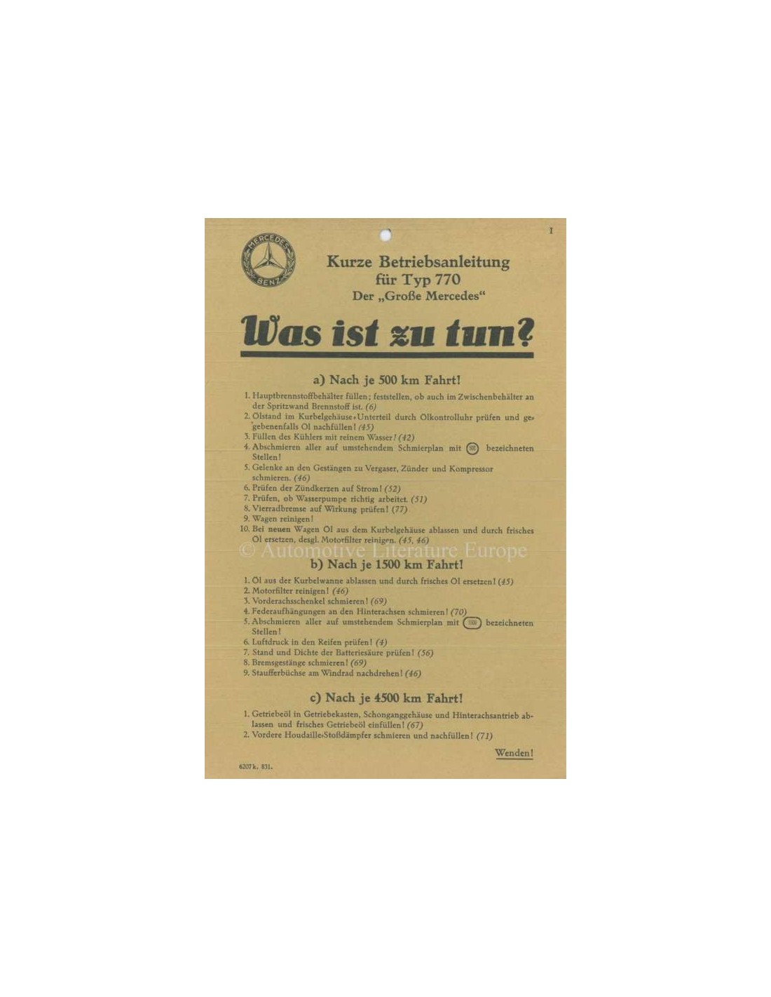 1931 MERCEDES BENZ TYPE 770 BETRIEBSANLEITUNG DEUTSCH