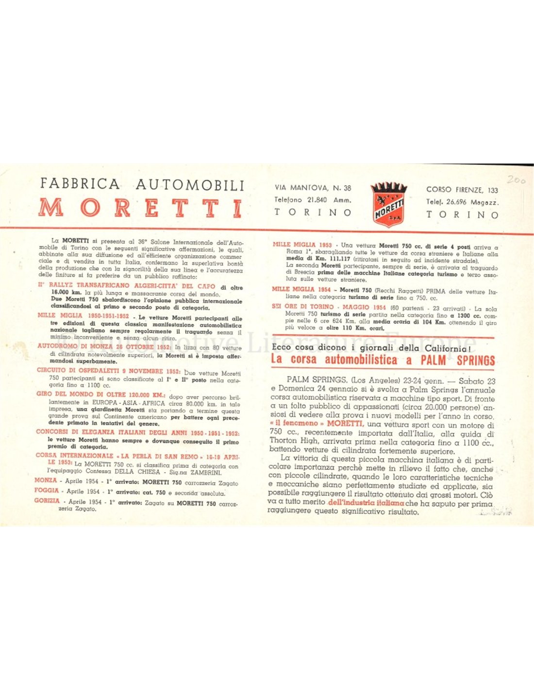 1955 MORETTI PROGRAMM PROSPEKT ITALIENISCH