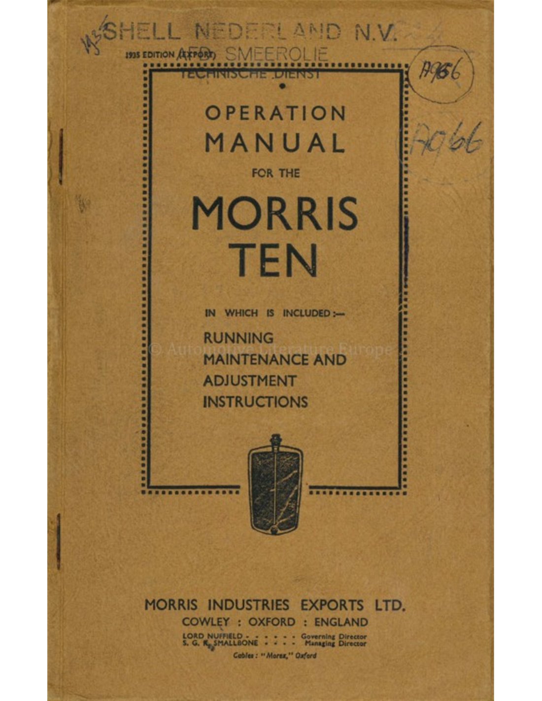 1935 MORRIS TEN BETRIEBSANLEITUNG ENGLISCH