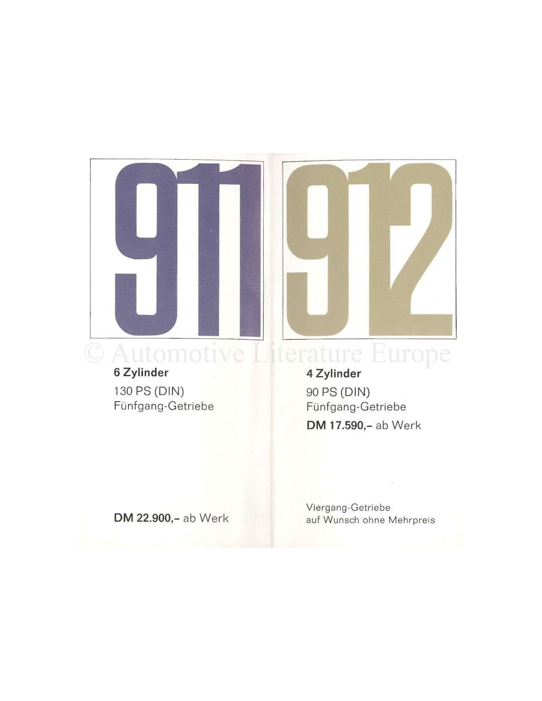1966 PORSCHE 911 / 912 PREISLISTE DEUTSCH