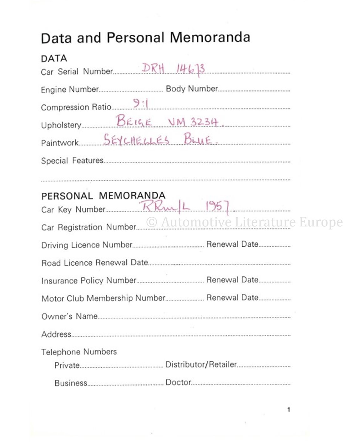 1971 ROLLS ROYCE | BENTLEY CORNICHE BETRIEBSANLEITUNG ENGLISCH