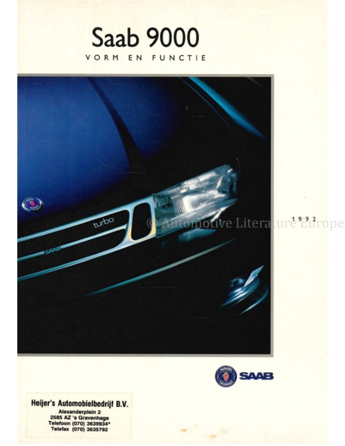 1992 SAAB 9000 FORM & FUNKTION PROSPEKT NIEDERLÄNDISCH
