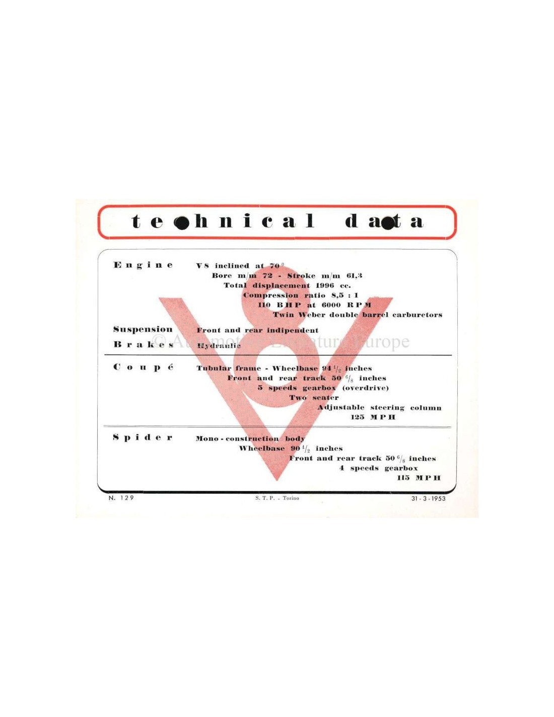 1953 SIATA 208 S PROSPEKT ENGLISCH