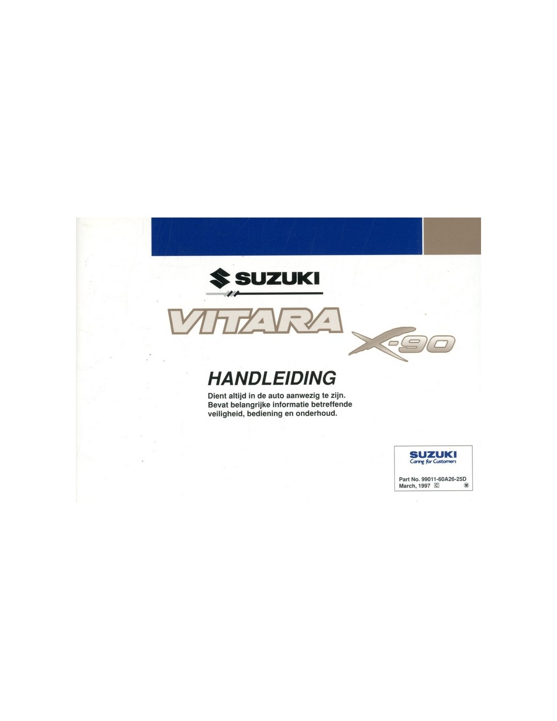 1997 SUZUKI VITARA X-90 INSTRUCTIEBOEKJE NEDERLANDS