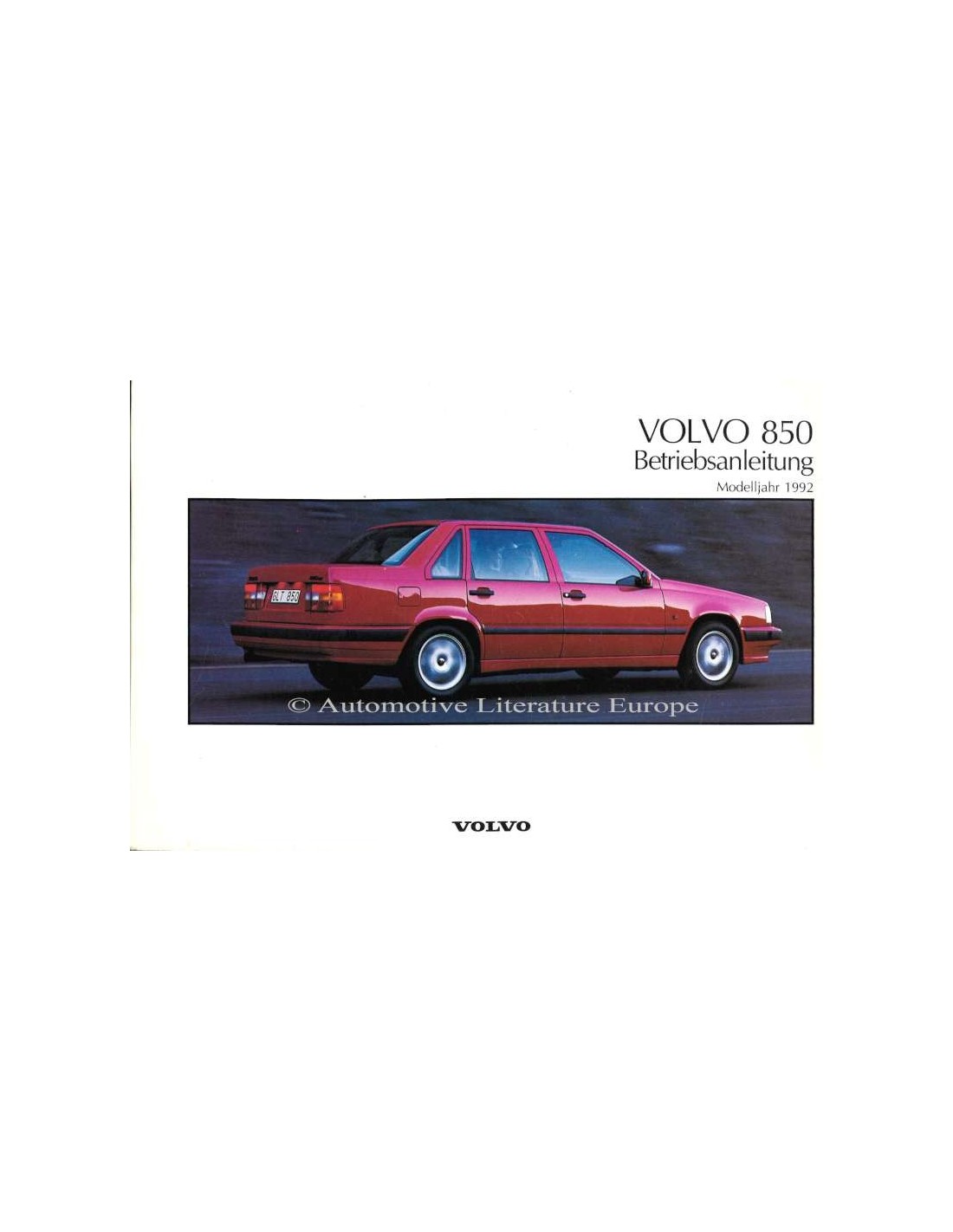 1992 VOLVO 850 BETRIEBSANLEITUNG DEUTSCH