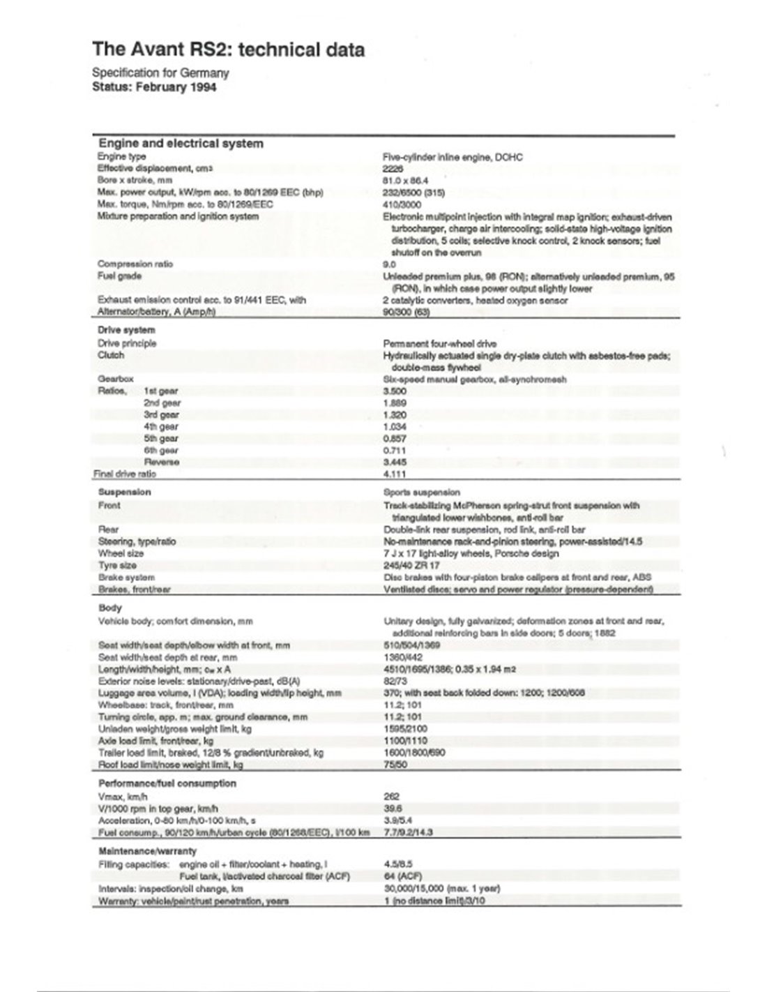 1994 AUDI RS2 AVANT PRESSKIT ENGLISH