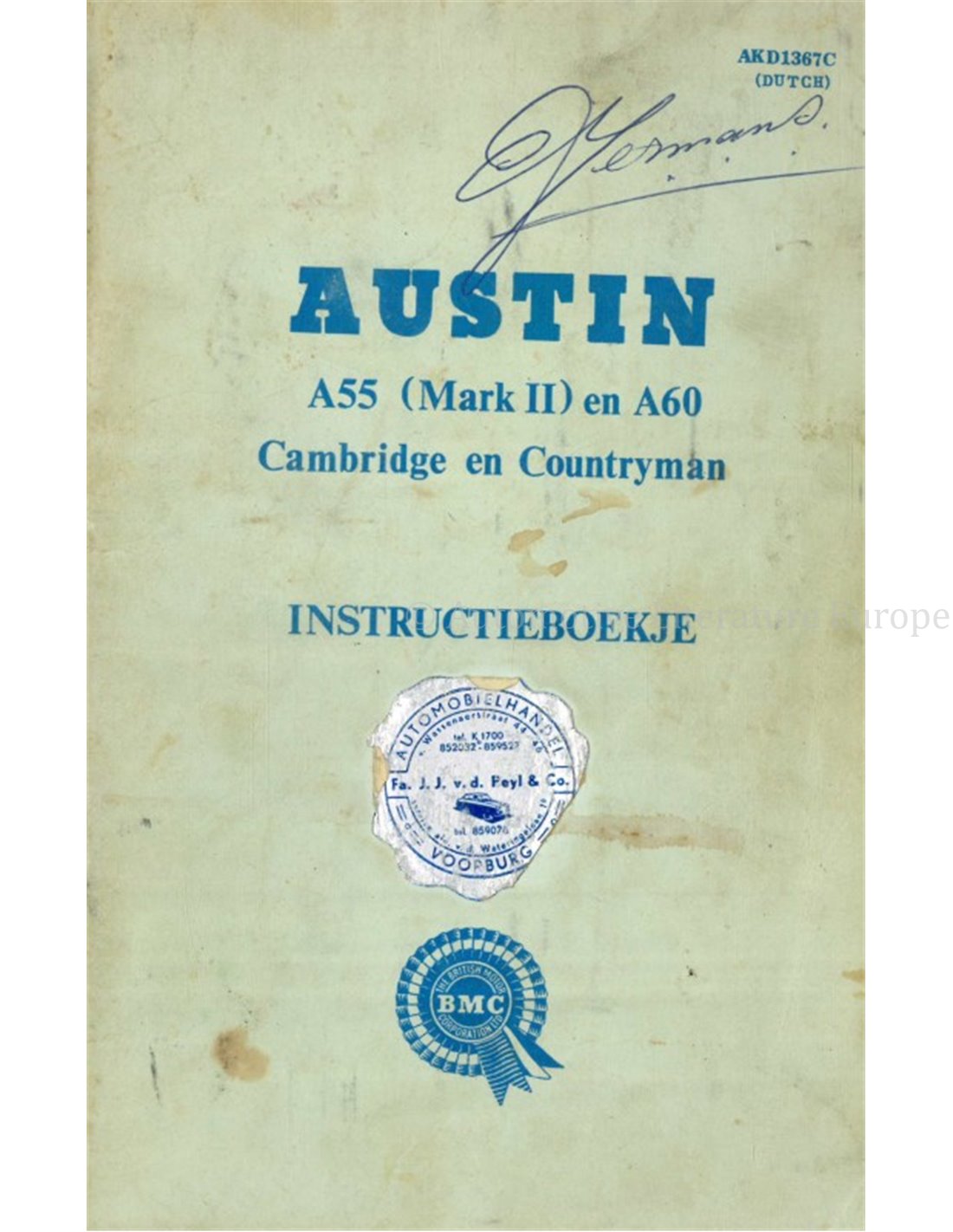 1963 AUSTIN A55 (MK II) | A60 OWNERS MANUAL DUTCH