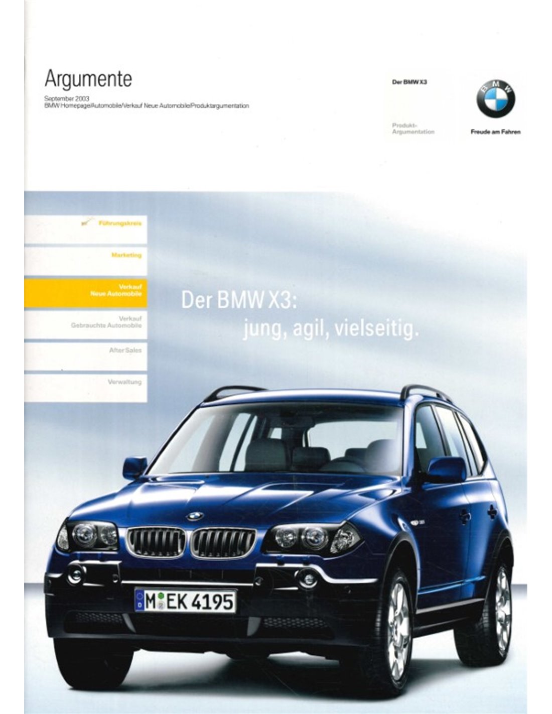 2003 BMW X3 PRODUCT SELLING POINTS BROCHURE GERMAN
