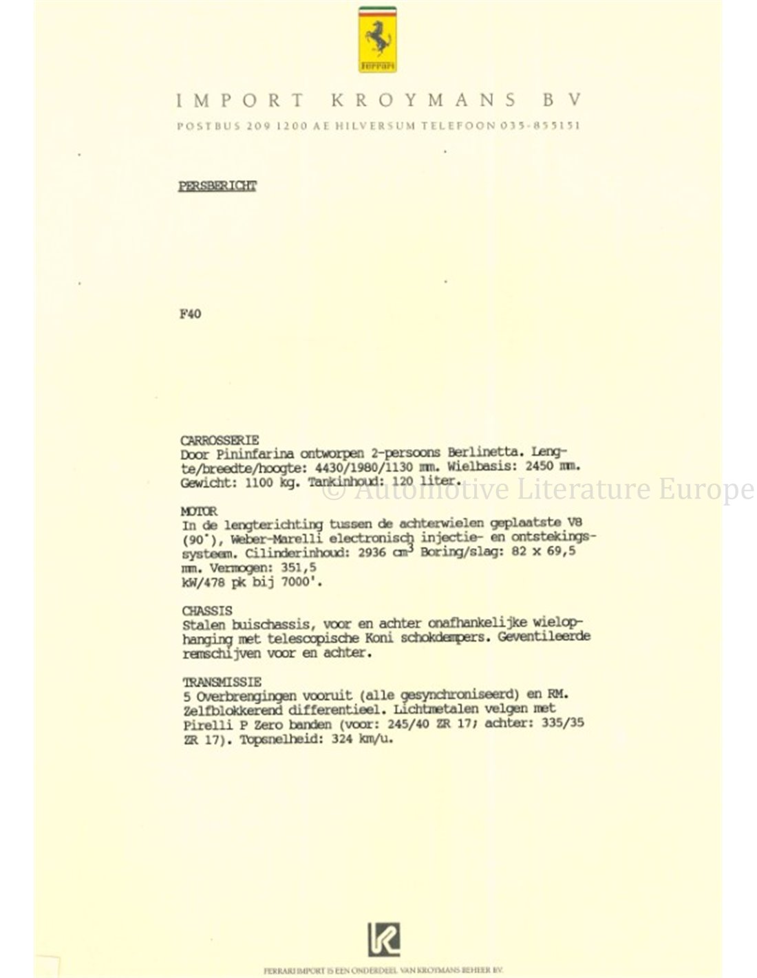 1988 FERRARI KROYMANS PRESSKIT DUTCH