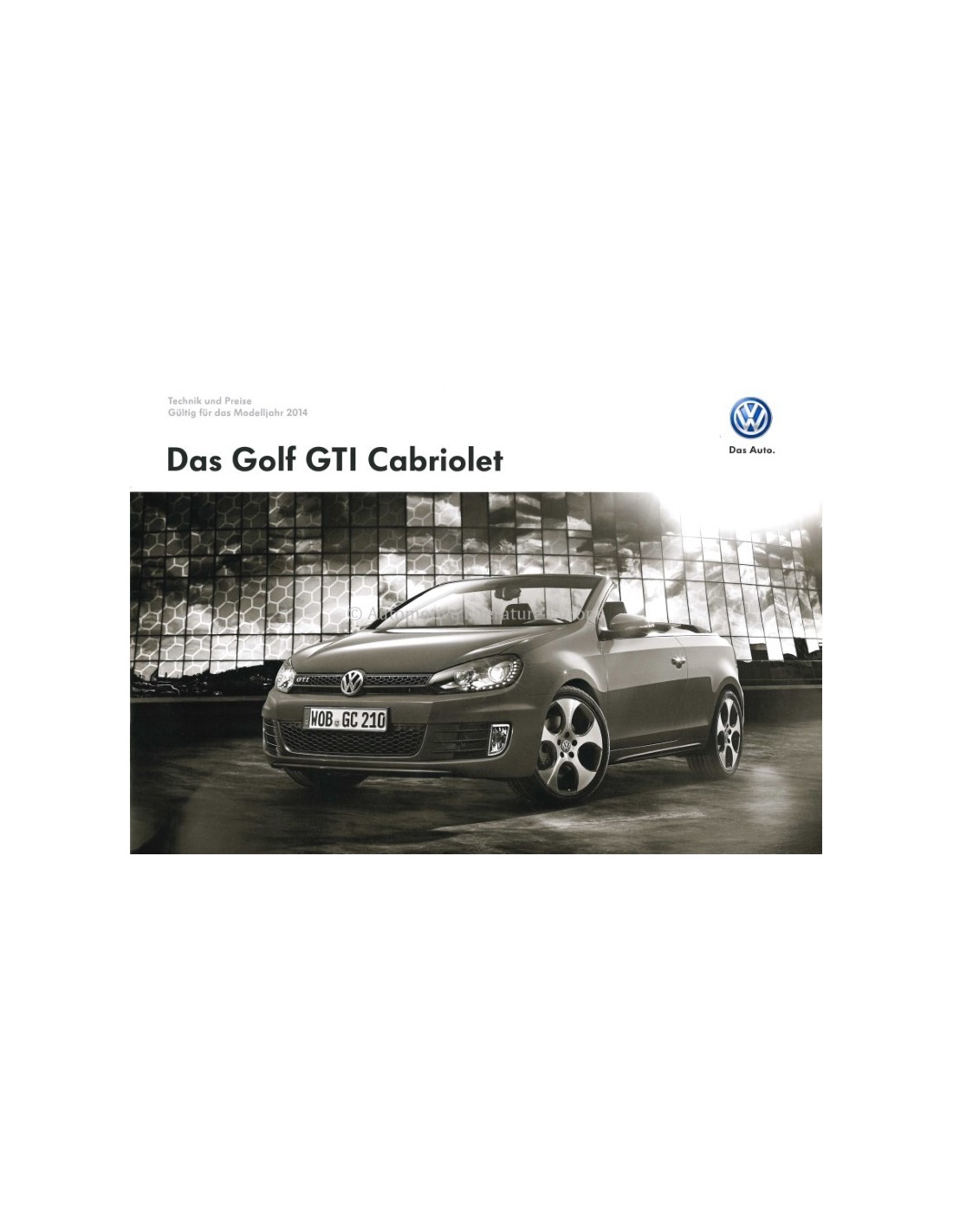 2013 VOLKSWAGEN GOLF GTI CONVERTIBLE BROCHURE GERMAN