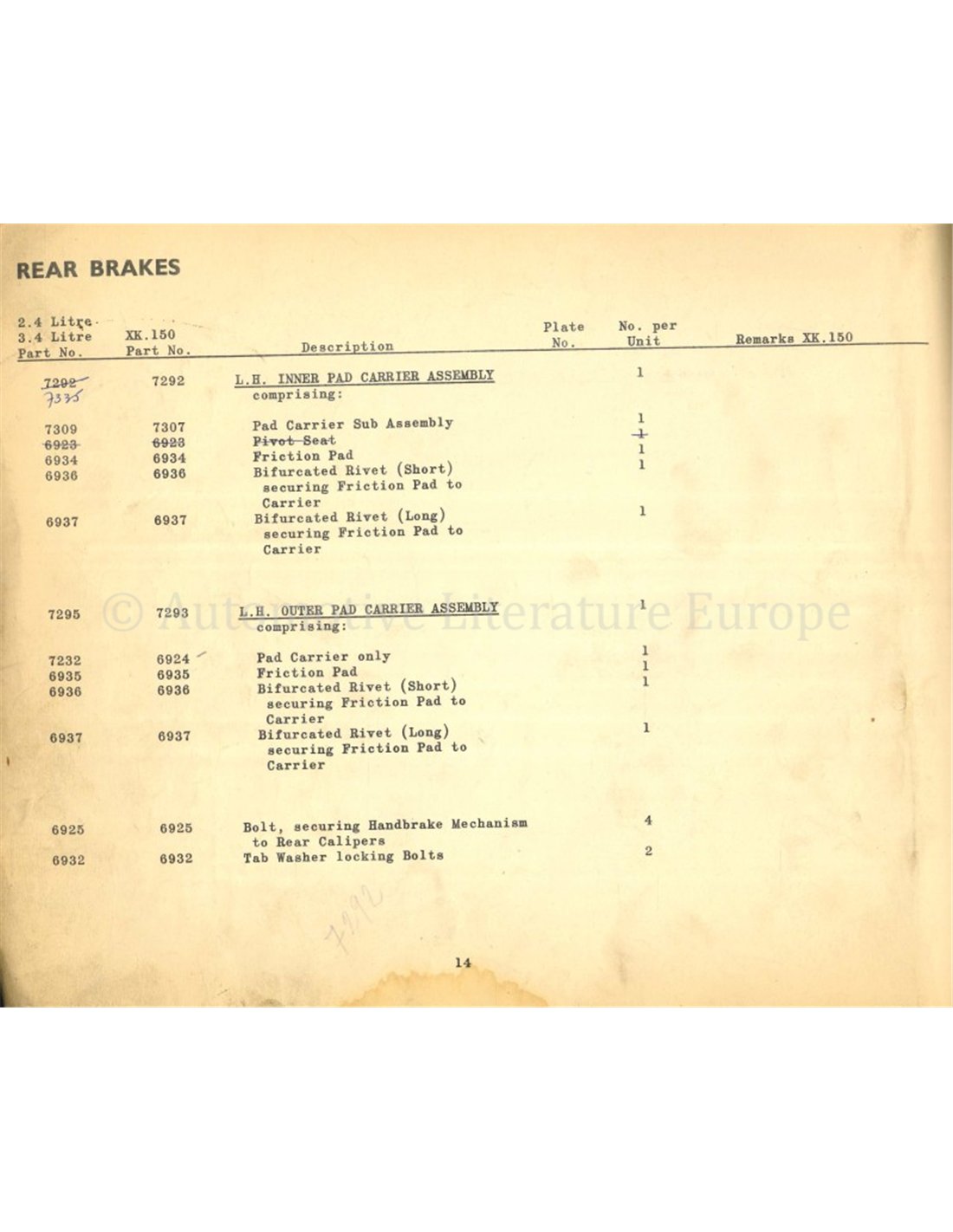 1957 JAGUAR 2.4 | 3.4 | XK 150 DISC BRAKES SPARE PARTS CATLOGUE ENGLISH