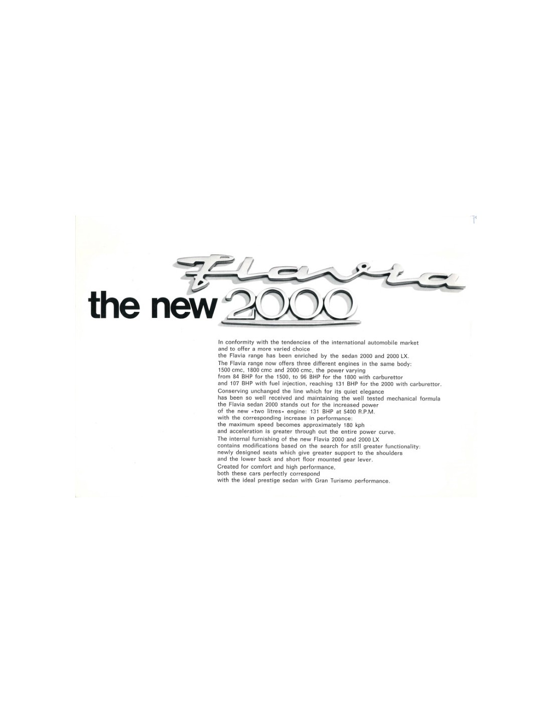1968 LANCIA FLAVIA 2000 BROCHURE ENGLISH
