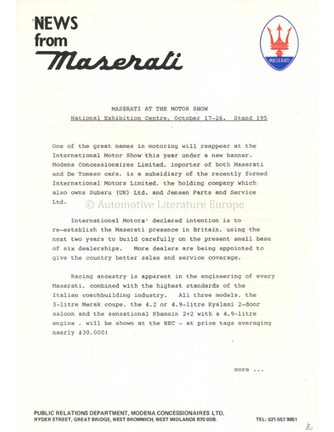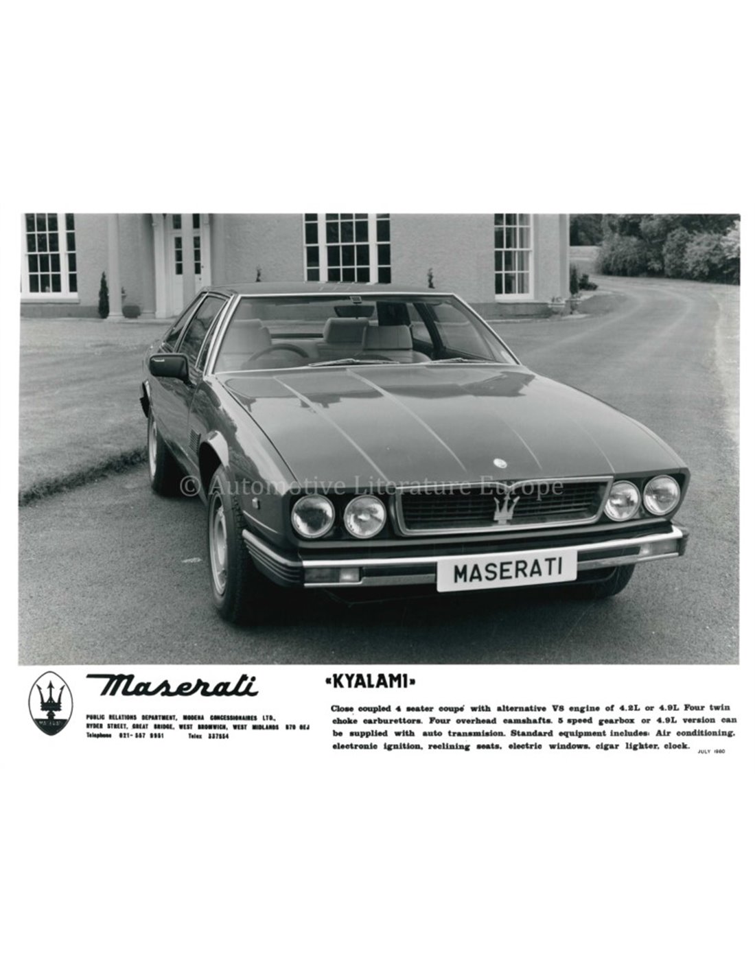 1980 MASERATI KYALAMI PRESSINFORMATION ENGLISH