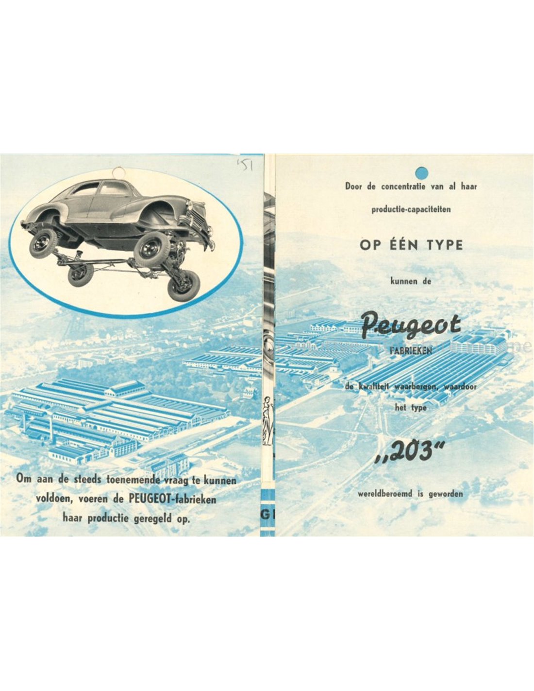 1951 PEUGEOT 203 BROCHURE DUTCH