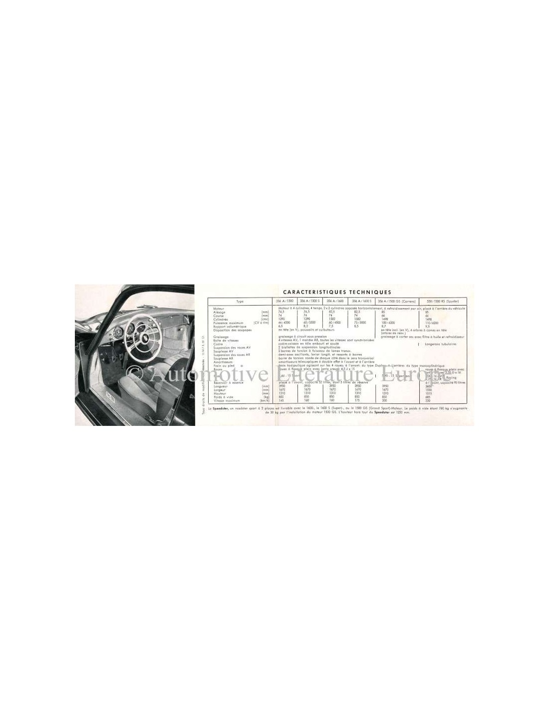 1956 PORSCHE 356A TECHNICAL SPECIFICATIONS BROCHURE FRENCH