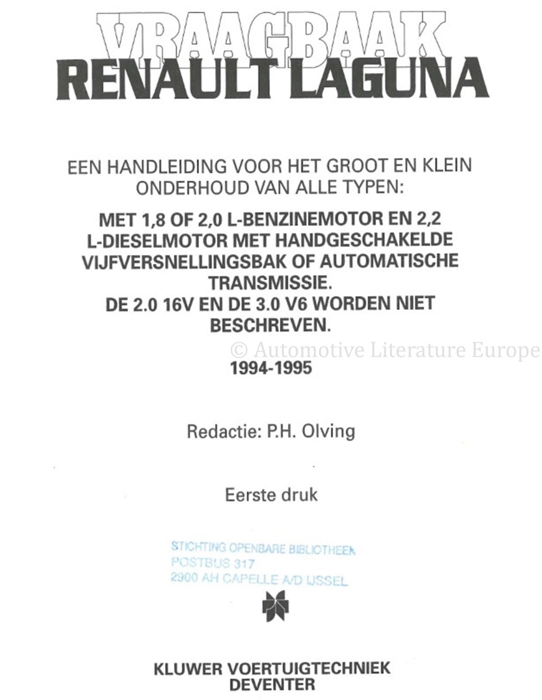 1994-1995 RENAULT LAGUNA PETROL | DIESEL REPAIR MANUAL DUTCH