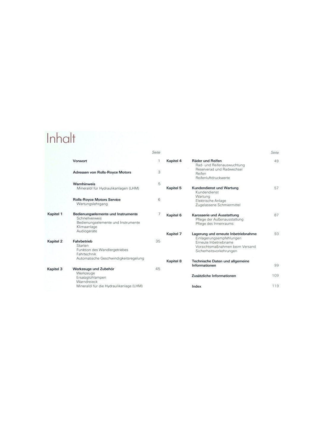 1986 ROLLS ROYCE SILVER SPUR OWNERS MANUAL GERMAN