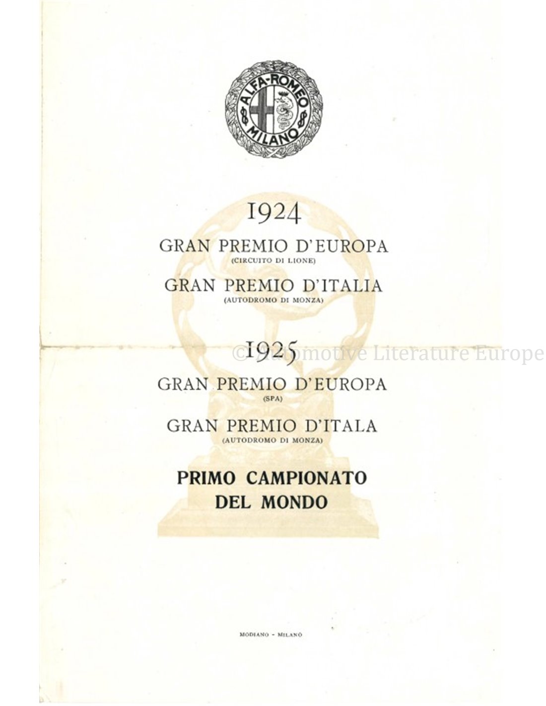 1925 ALFA ROMEO 6C 1500 BROCHURE ITALIAANS