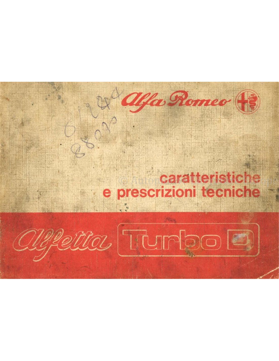 1980 ALFA ROMEO ALFETTA 2.0 TURBO D KARAKTERISTISCHE EN VOORGESCHREVEN TECHNIEK HANDBOEK ITALIAANS