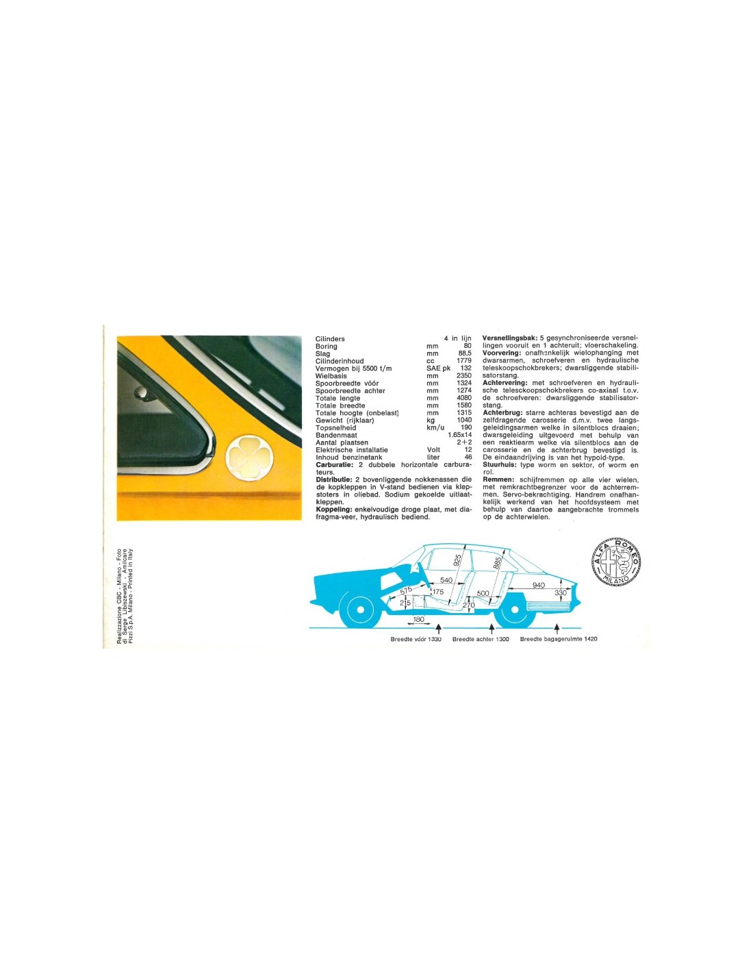 1969 ALFA ROMEO GT 1750 VELOCE BROCHURE NEDERLANDS