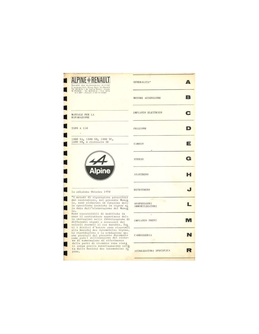 1970 ALPINE A110 1300 / 1600 REPARATIEHANDLEIDING ITALIAANS