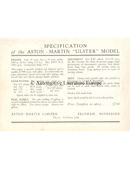 1934 ASTON MARTIN ULSTER LEAFLET ENGELS