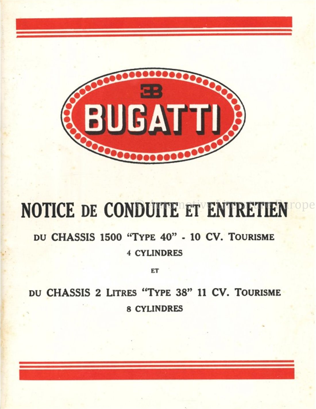 1929 BUGATTI TYPE 38 | 40 INSTRUCTIEBOEKJE FRANS