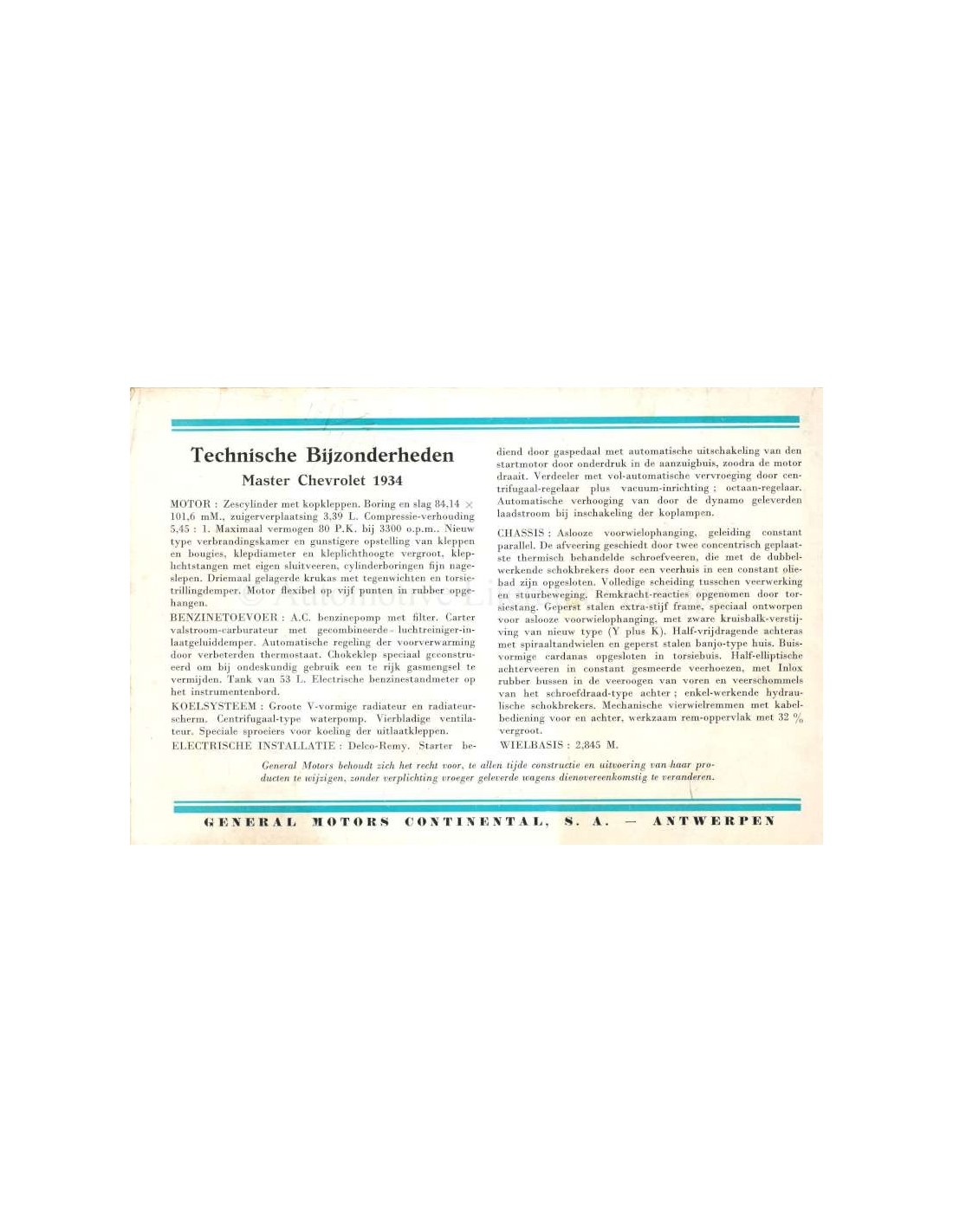 1934 CHEVROLET MASTER PROGRAMMA BROCHURE NEDERLANDS