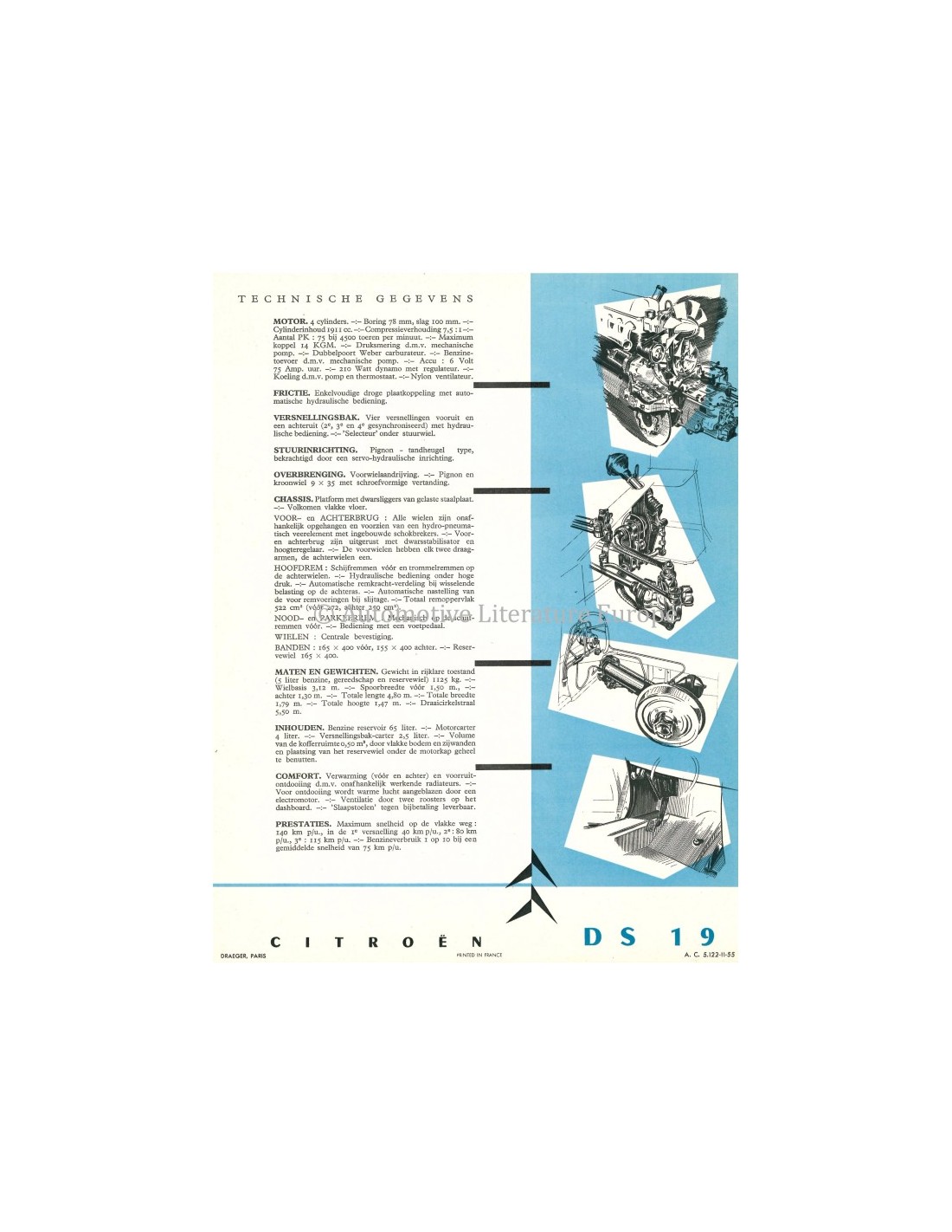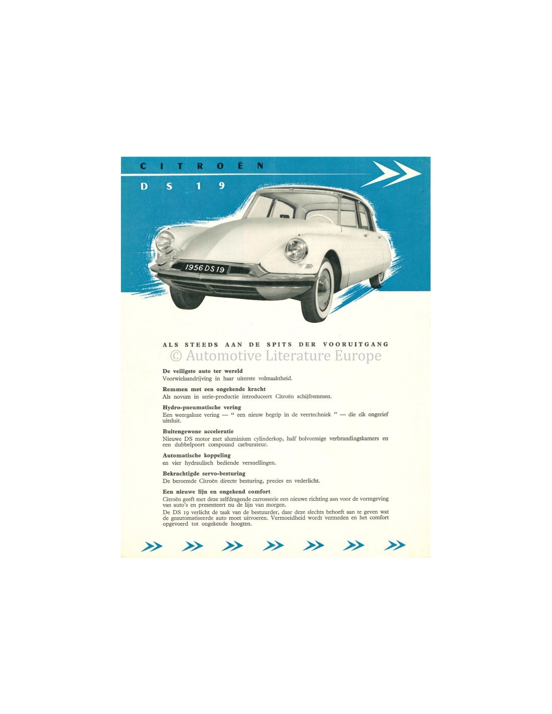 1956 CITROEN DS 19 LEAFLET NEDERLANDS