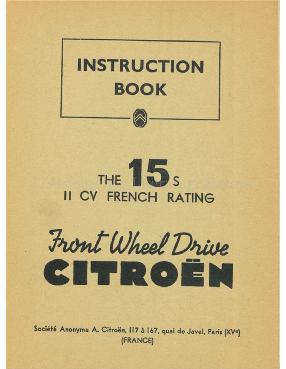 1953 CITROËN TRACTION AVANT INSTRUCTIEBOEKJE ENGELS
