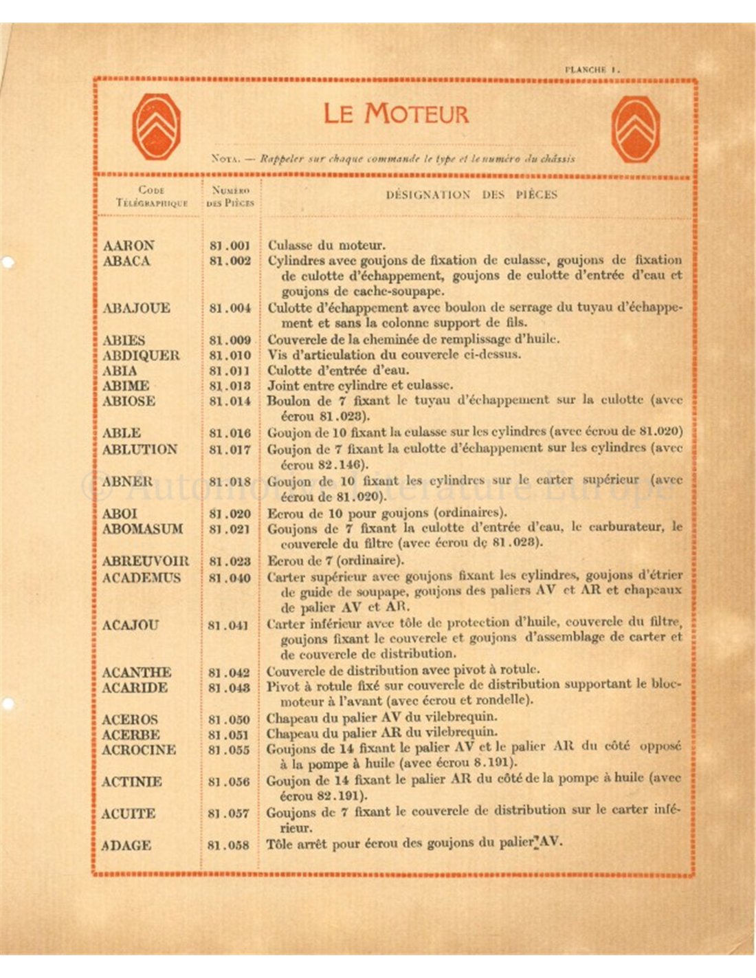 1924 CITROËN B10 ONDERDELEN BOEK FRANS