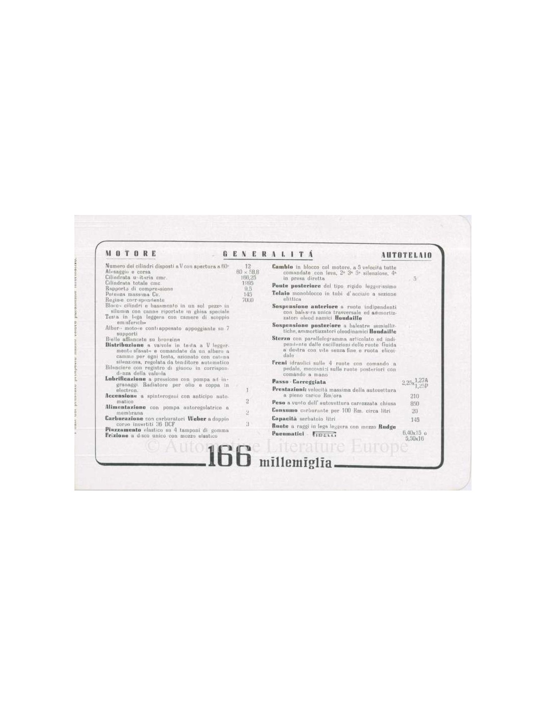 1951 FERRARI 166 MILLEMIGLIA BROCHURE ITALIAANS