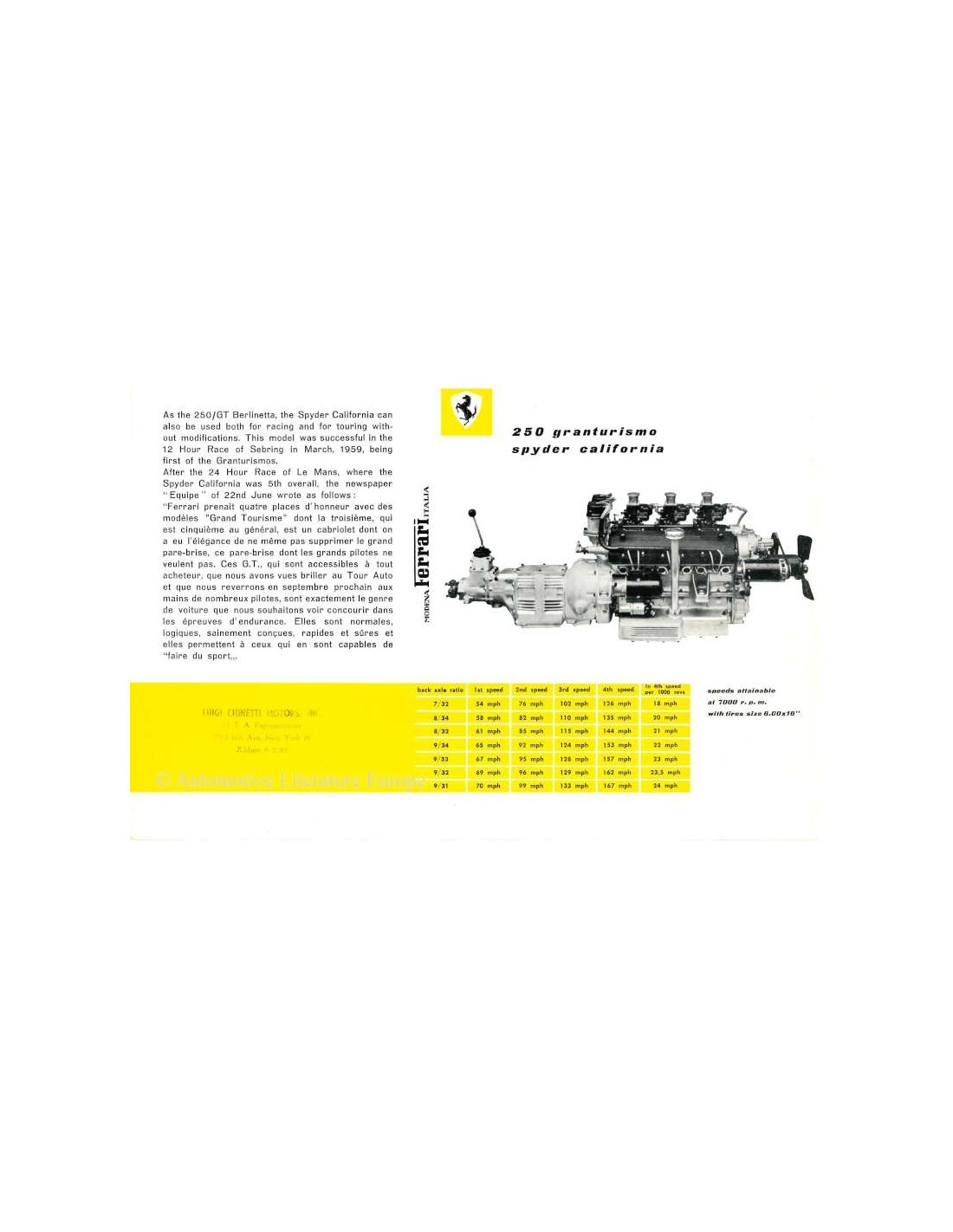 1960 FERRARI 250 GRANTURISMO SPYDER CALIFORNIA BROCHURE ENGELS