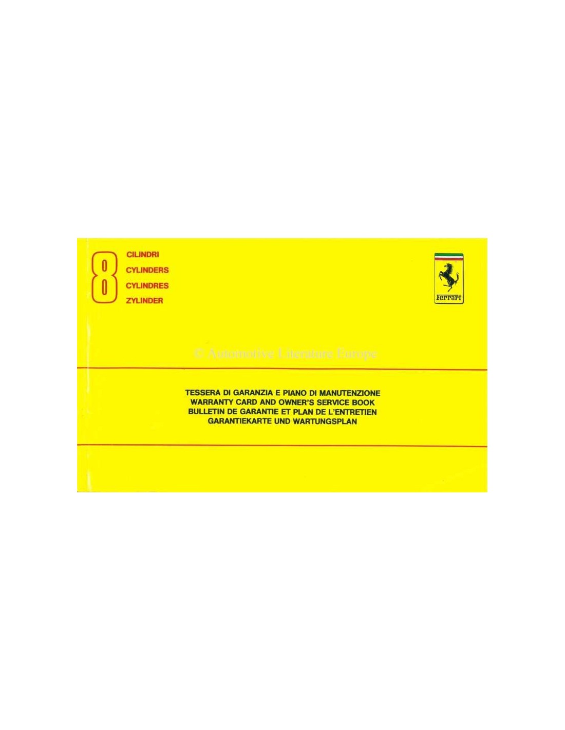 1989 FERRARI 348 TB GARANTIEKAART & SERVICEBOEKJE 569/89
